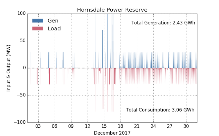 Over the full month of December, the Hornsdale power reserve generated 2.42 gigawatt-hours of energy, and consumed 3.06GWh.