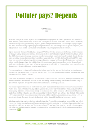 In the last three years, climate litigation has emerged as a re-shaping force in climate governance, with over 3,000 cases recorded globally across nearly 60 countries. This expansion includes government accountability frameworks, corporate liability claims, greenwashing litigation, youth- and rights-based actions, and challenges to project approvals. Even in cases involving negative judgments against citizens who have brought actions against companies, new legal principles could provide a useful basis for making the polluter-pays principle more effective.