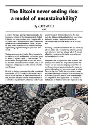 A currency that keeps growing and democratizes the digital economy but looks far from being ecological. Maybe it is the right time to ask questions about the sustainability of the cryptocurrency. A bubble about to burst? The apparently inexplicable and irresistible Bitcoin dancer’s progress led many market observers that the electronic money (or cryptocurrency) is just the latest giant speculation. Time will tell.