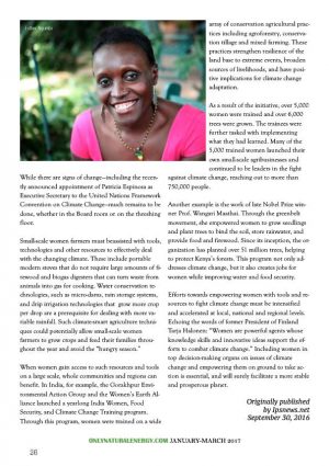 When women gain access to such resources and tools on a large scale, whole communities and regions can benefit. In India, for example, the Gorakhpur Environmental Action Group and the Women’s Earth Alliance launched a yearlong India Women, Food Security, and Climate Change Training program. Through this program, women were trained on a wide array of conservation agricultural practices including agroforestry, conservation tillage and mixed farming. These practices strengthen resilience of the land base to extreme events, broaden sources of livelihoods, and have positive implications for climate change adaptation.
